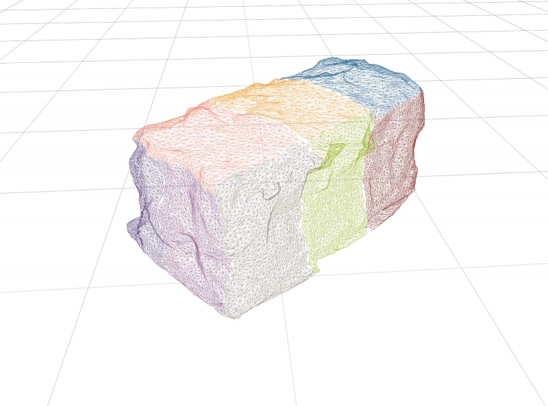 The video shows how a rough cuboid is being modeled out of a concrete block. This is done with the help of the limited tools offered by combat-focused game “The Division”. The sculpting process is being projected on the resulting shape, which was captured and printed out with the help of 3D-rendering software.